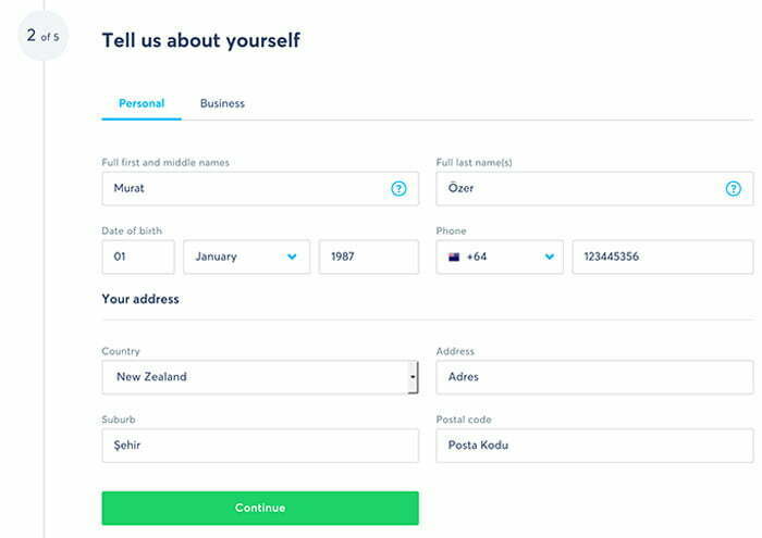 Daha sonra bize kendinden bahset diye bir ekran geliyor ve buraya kişisel bilgilerimizi girmemiz gerekiyor. Bilgilerinizi yazdıktan sonra Continue diyerek devam ediyorsunuz.