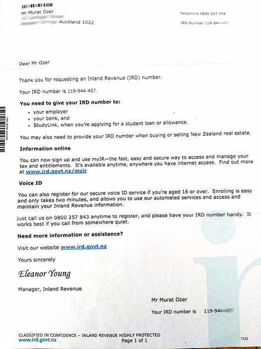 7-10 gün içerisinde adresinize posta ile IRD numaranızın yazılı olduğu belge geliyor. IRD numarasını aldıktan sonra bu adresten online IRD hesabınızı oluşturup, vergi kesintilerinizi ve kazançlarınızı görüntüleyebiliyorsunuz.